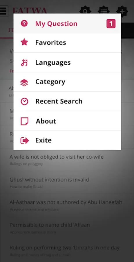 - Einfacher und direkter Zugriff auf mit dem entsprechenden Thema verwandte Fatwas auf der Webseite.