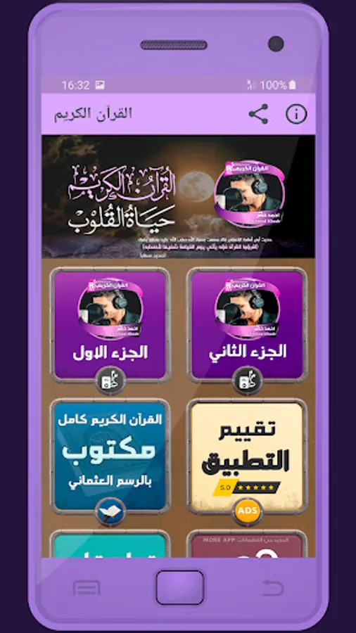 🔊 The application of the Noble Qur’an with the voice of Ahmed Khadr, with the narration of Hafs on the authority of Asim, in high quality