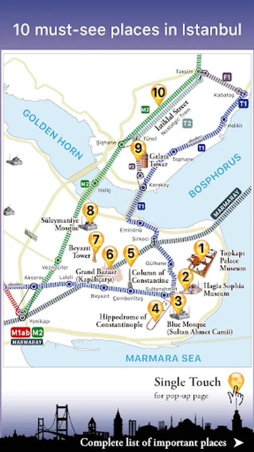 1- Detailed description of 10 must-see historical and touristic places in İstanbul.