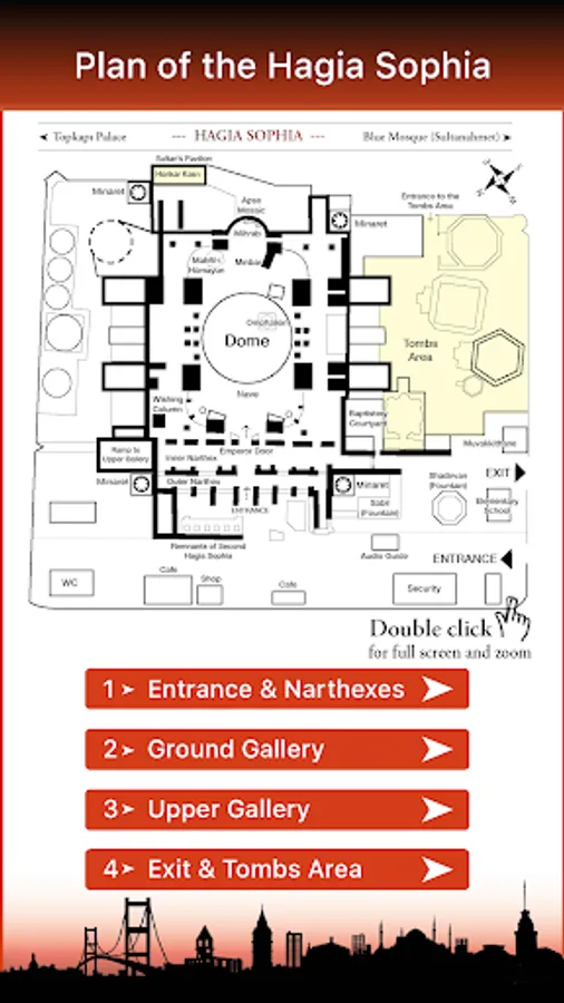 Hagia Sophia application is a detailed guide designed to enable tourists to visit the Hagia Sophia, one of the symbols of İstanbul, easily and without any help.