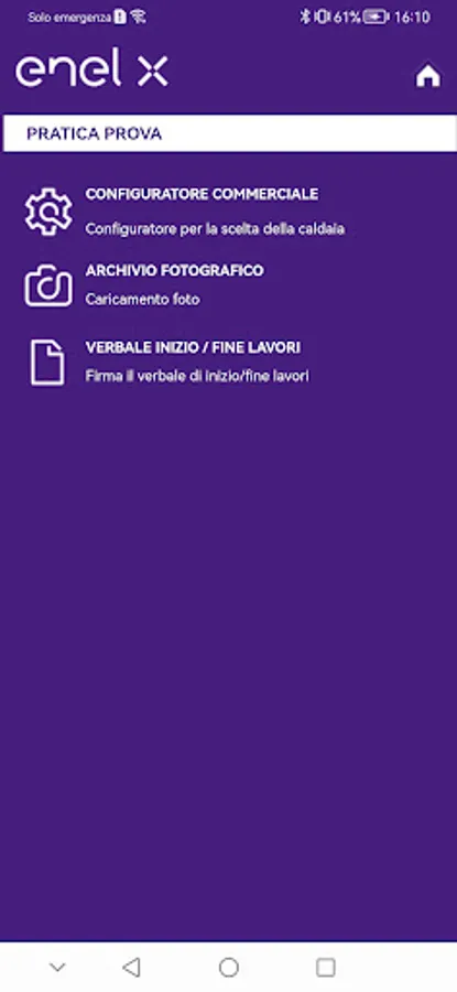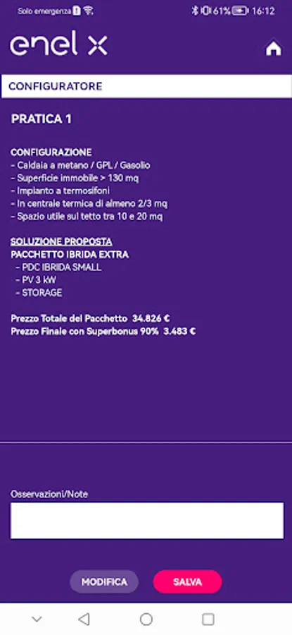 This APP can only be used in combination with the ITALSOFT GROUP credit transfer portal. It is mainly aimed at Enel X installers and allows the configuration of the heating, photovoltaic and solar system, by answering a few simple questions. It also allows you to upload the photographic archive before and after the interventions and sign the minutes of the start and end of the works.