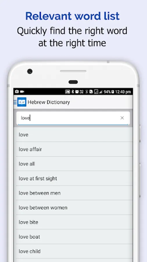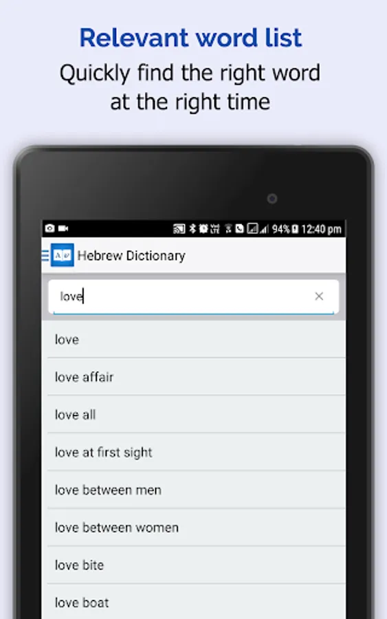 Find the correct meaning of all the English words, Hebrew Dictionary is very simple to use, and the interface is design for you to fins exactly the term you are looking for. Find deeper meaning to sentences, words, phrases, common sayings and more.