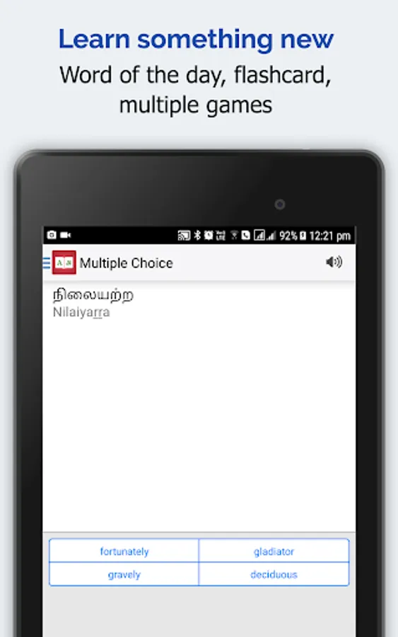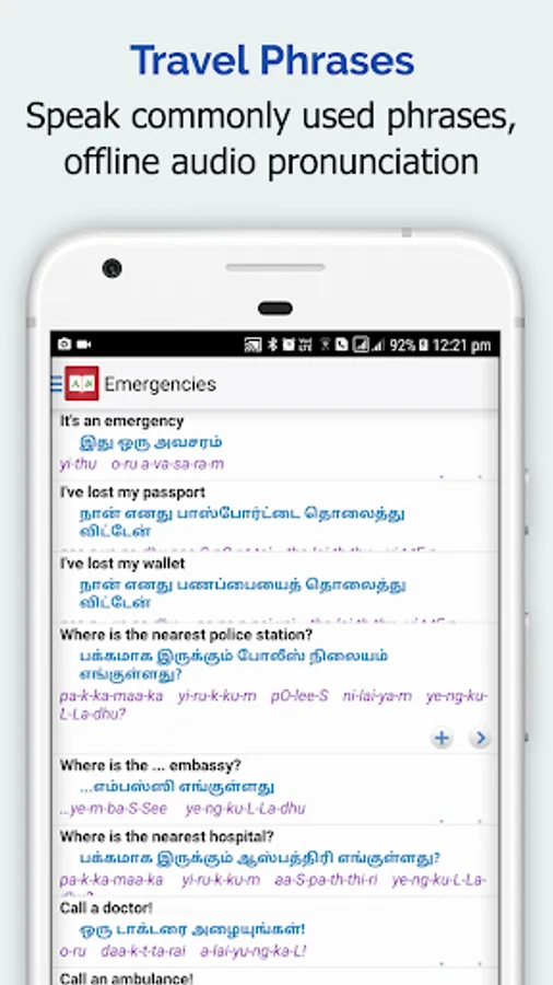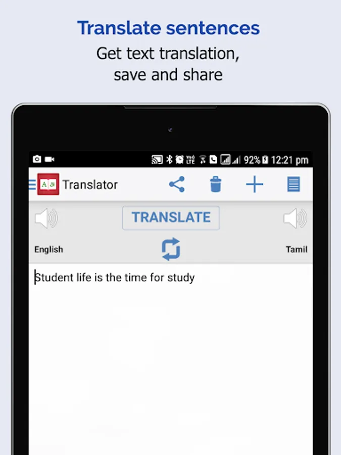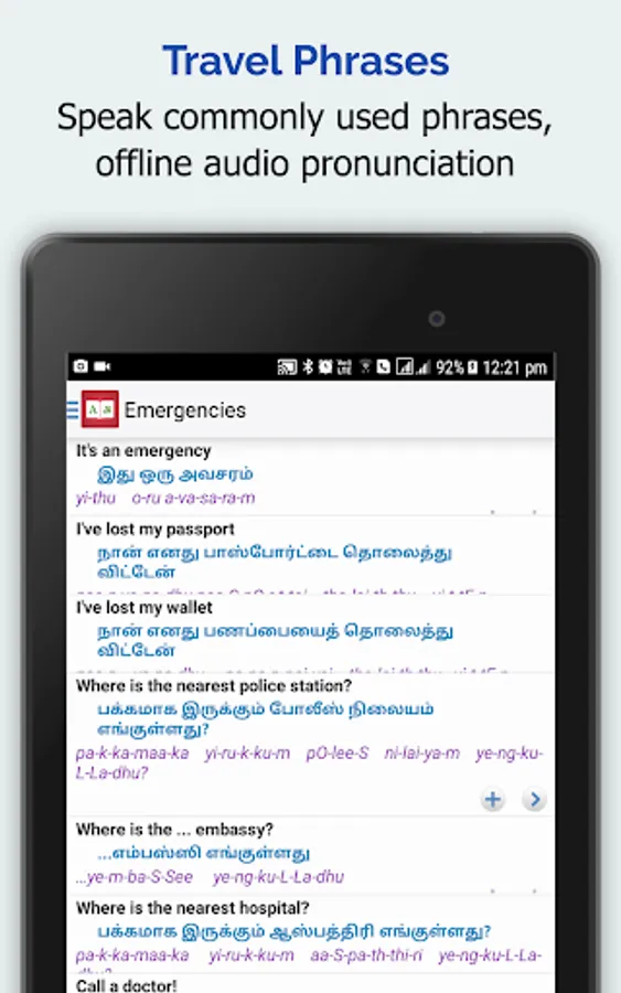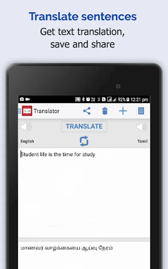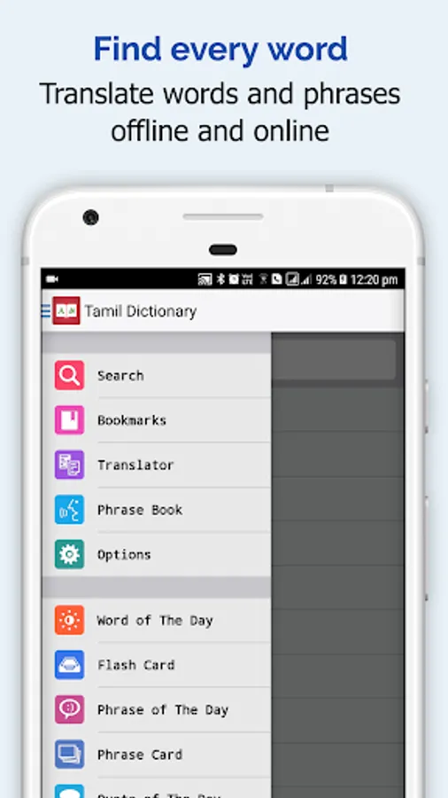 It is very easy to translate English to Tamil or Tamil to English with this Bilingual Dictionary. You will find the correct way to pronounce any word or phrase. It is perfect for teachers and students who want to learn English or Tamil. You will also find synonyms and antonyms for each language. On-line & Of-line Mode dictionary