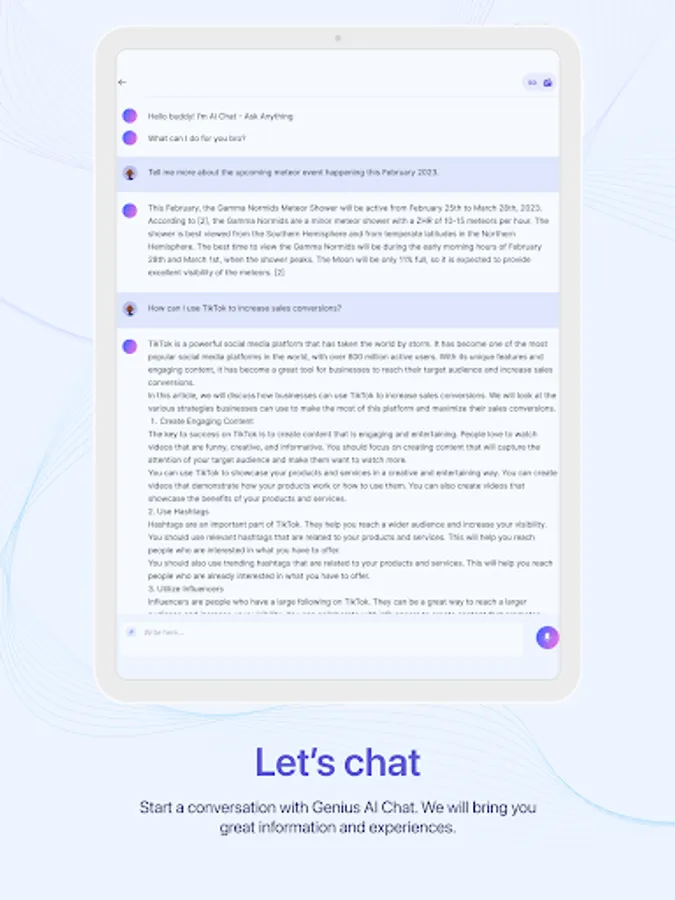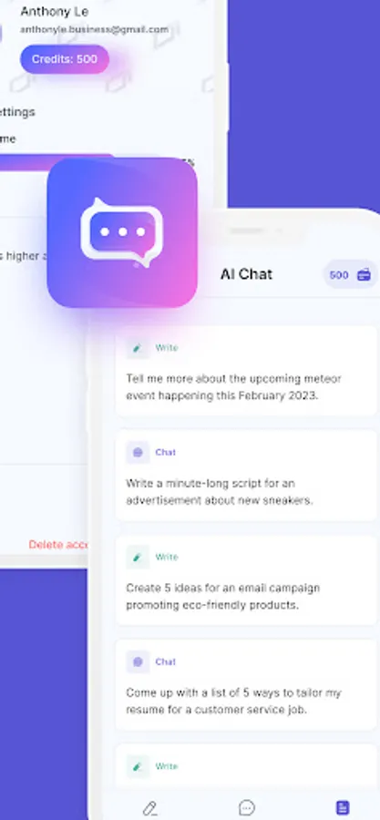 The revolutionary new way to create content! The GPT-powered app makes writing easier than ever before. Get started today and experience the power of AI writing! Use Chat AI to write, reply, chat, and correct grammar. Emails, essays, articles, social posts, and any material may be generated in over 25 languages.