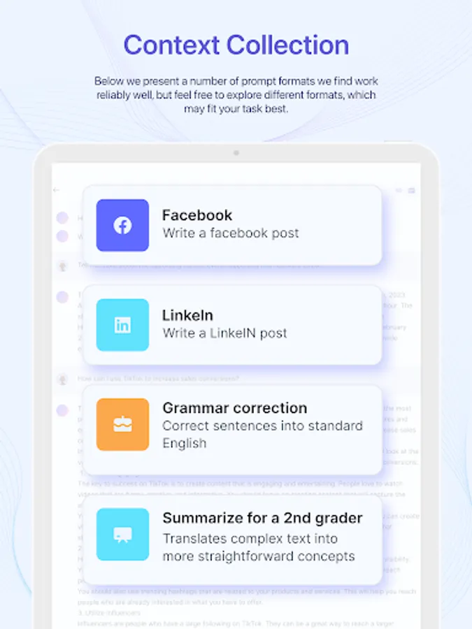 *WRITE* articles, essays, emails, messages, and outlines on any subject and in any context. Merely define your topic (for example, "an essay outline on Beethoven" or "a report on enhancing sales"), and Chat AI will give precisely written material in the style of your choice, ranging from a small paragraph to a whole essay outline and essay. For your convenience, we also provide voice input. Choose the tone and voice for your GPT AI-generated text to fine-tune it.