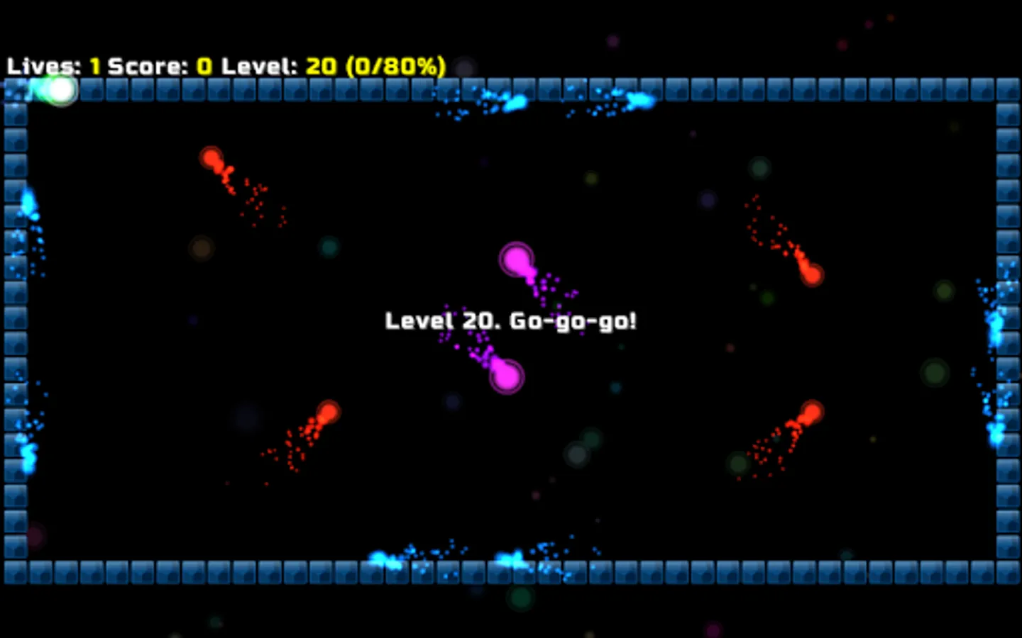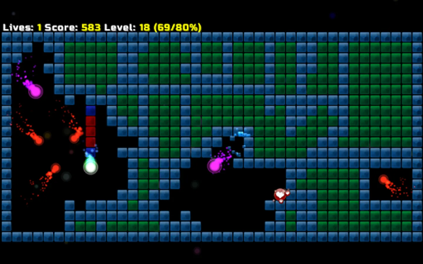 The goal of the game is to occupy 80% of the space on each level. Swipe anywhere on the screen to indicate the direction you want to move. Build walls to capture territory while you avoid various bad elements or carefully block them off.