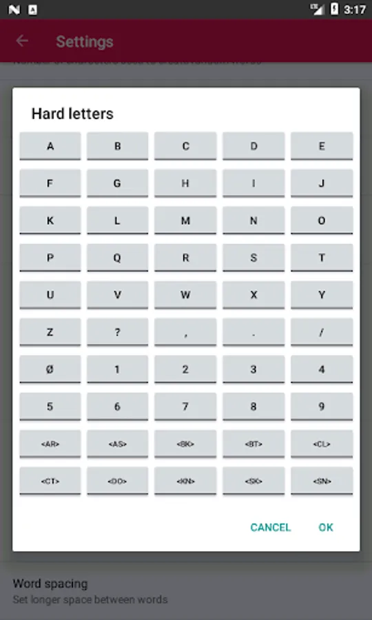 - the hard-letters settings allow increasing the frequency of the letters harder for the user to recognize