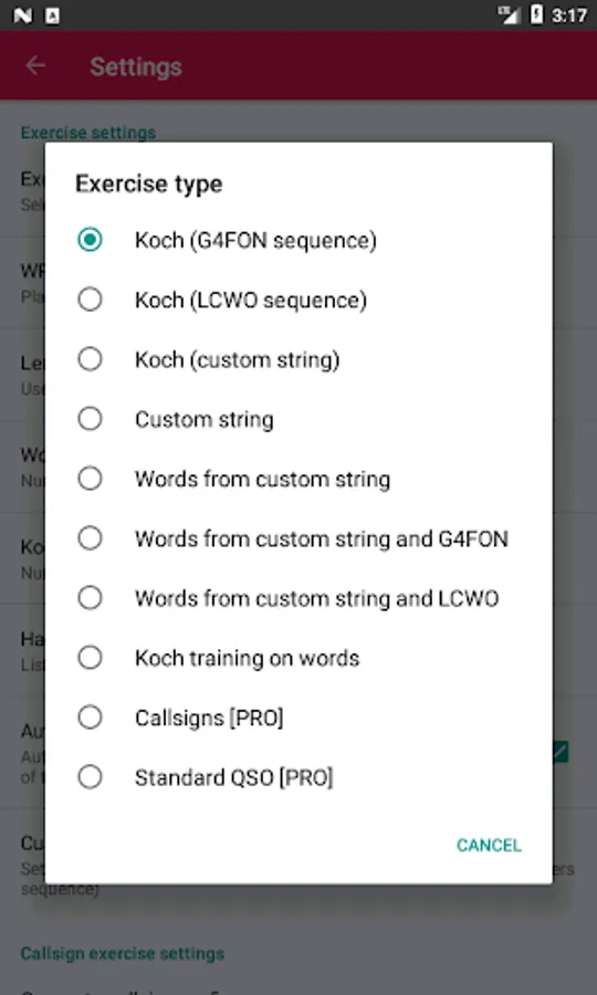 - the auto hard-letters feature automatically increases the frequency of the letters last added to the Koch exercise