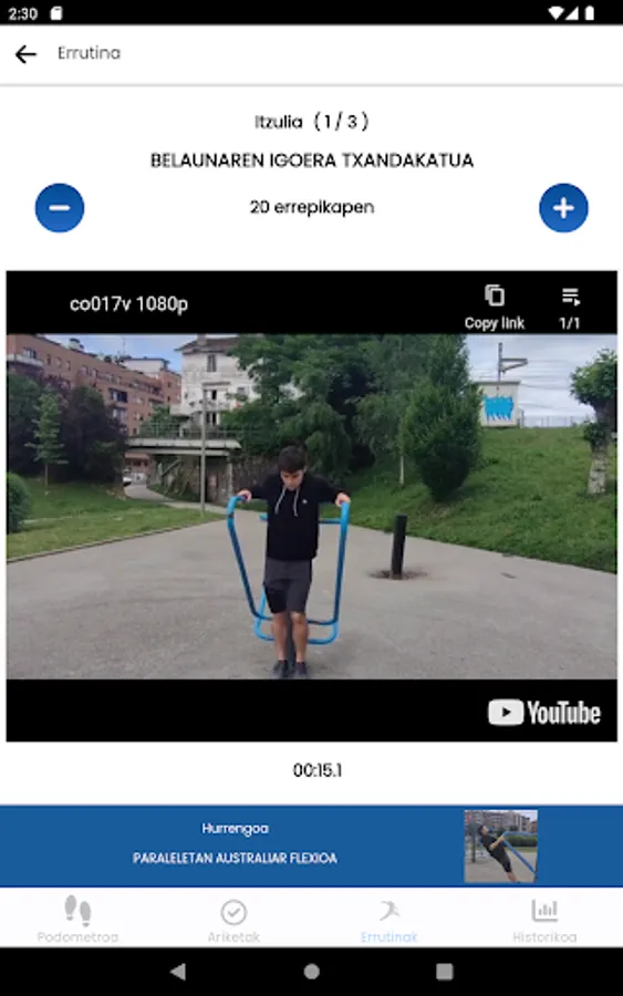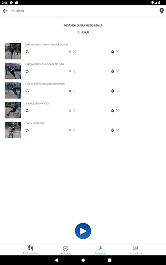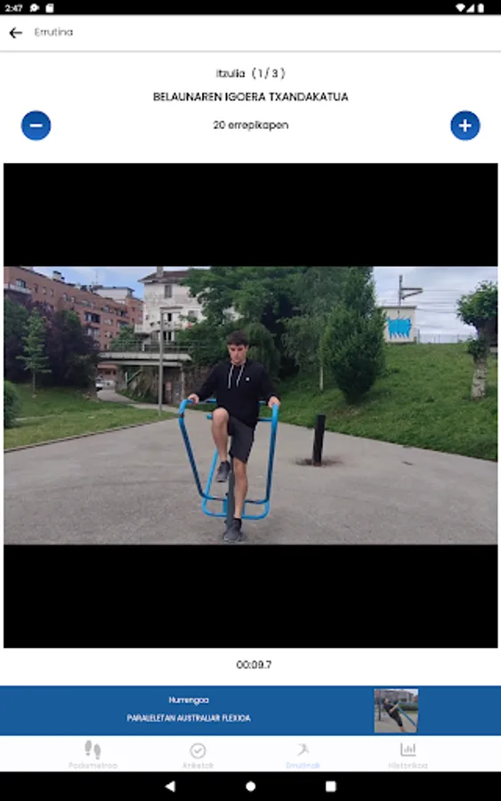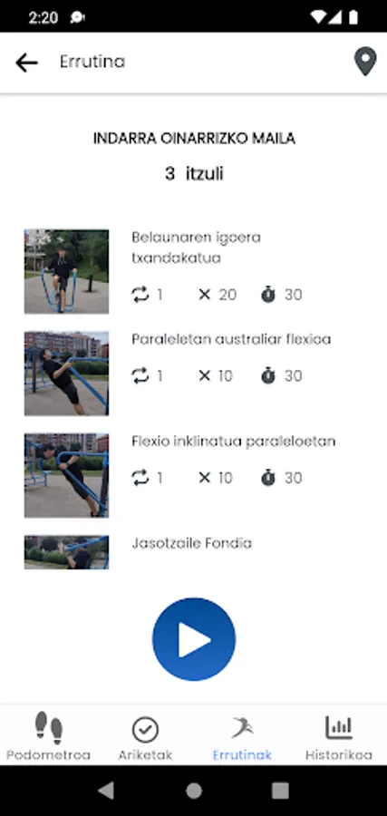 Through this application you will discover the parks near your home for physical activity. You will learn how to properly use the sports equipment in these parks and you will have the opportunity to design a training plan, through pre-designed routines, or through routines created by yourself.