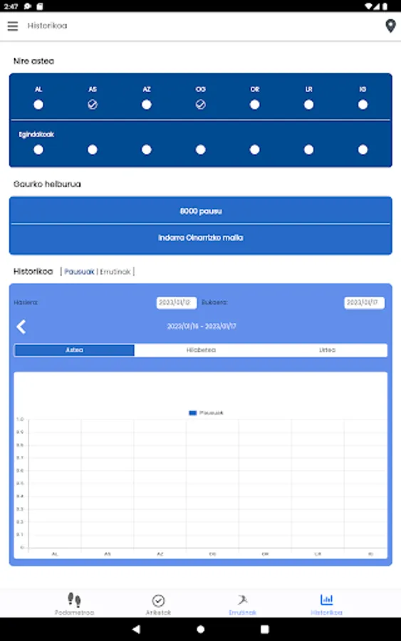 - Determine and monitor a goal of the steps taken every day.