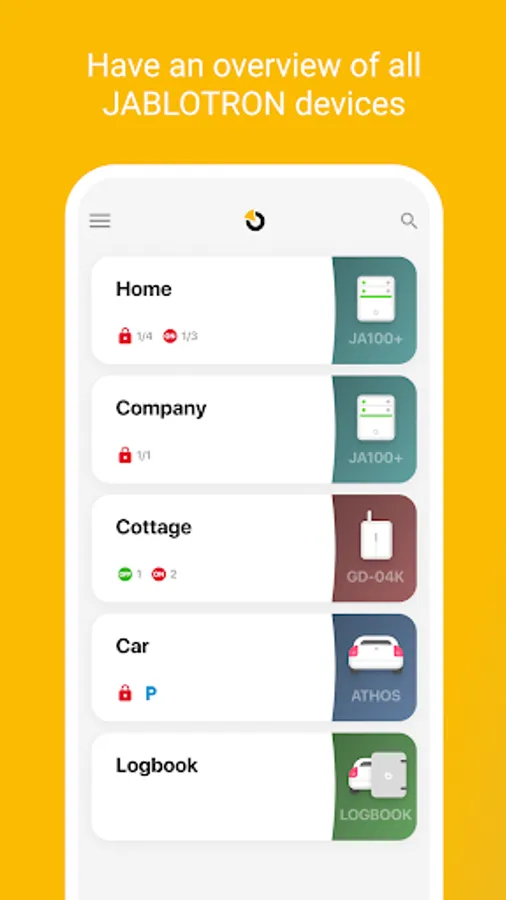 With the application you'll be able to control your Jablotron 100, OASIS, AZOR, GD-04K or ATHOS alarm systems and view the Logbook of supported devices such as tracking units or car alarms.
