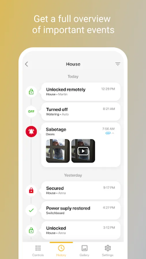 - Set up notifications (arming, disarming, alarms, pictures and more) for selected contacts using SMS, EMAIL or PUSH notification