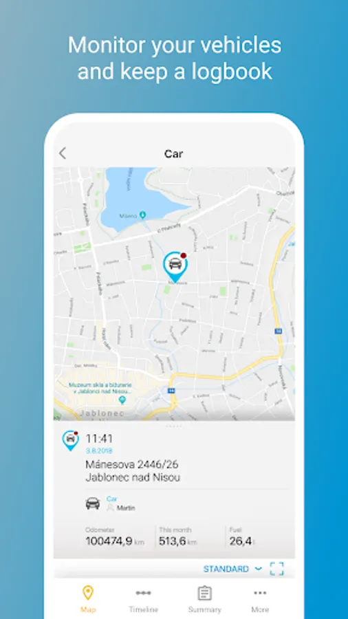 - Use complete fleet management (driver, car, fuel purchases and history of your routes)