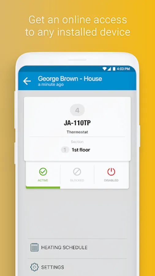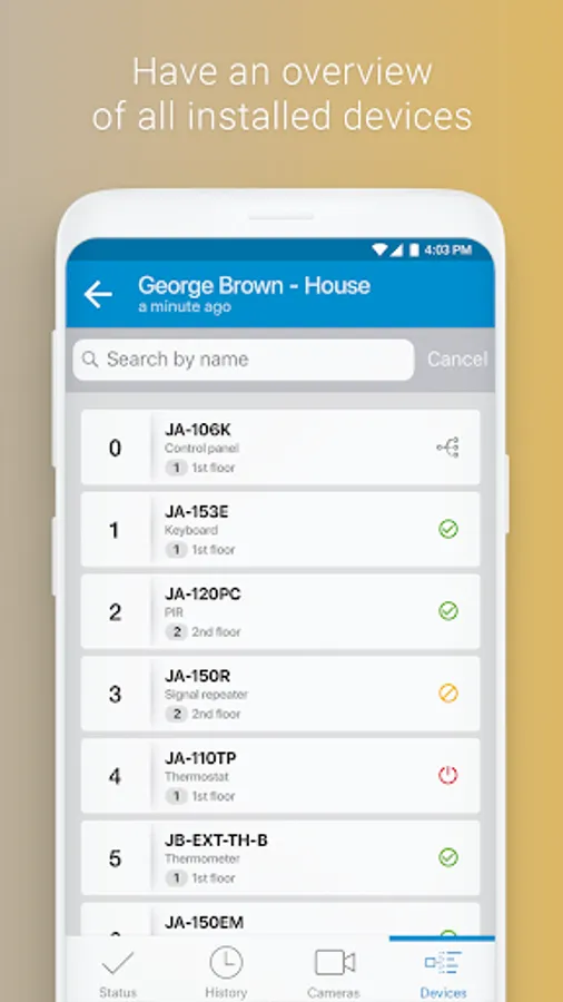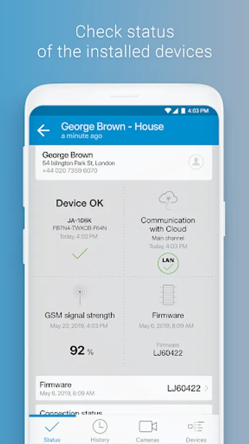 - Device administration module: A popular module that will allow an installer of Jablotron devices to carry out simple online diagnostics of devices, check their status, information about the HW and FW version, information about GSM signal quality, communication status and many more functions,