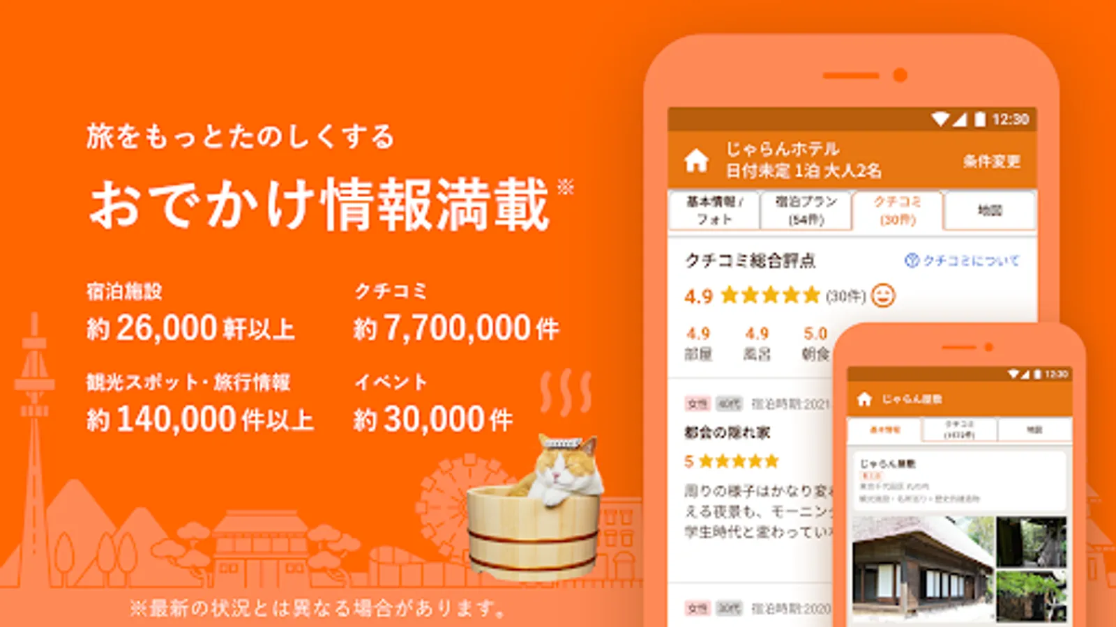 This is the official app of "Jalan net", one of the largest inn and hotel reservation sites in Japan provided by Recruit.