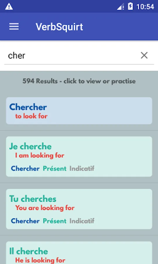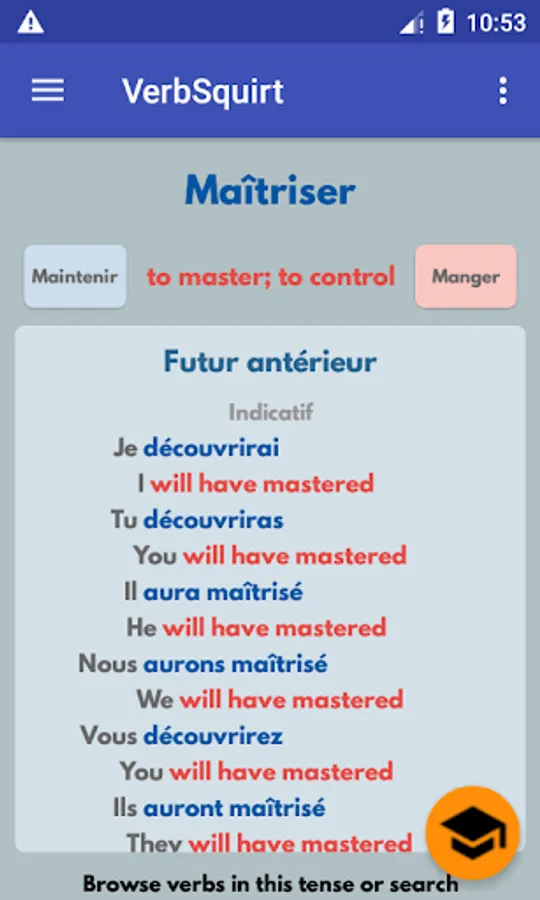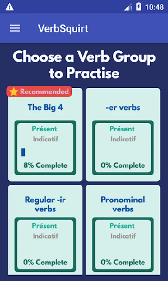 Once fluency improves, VerbSquirt helps the user gain familiarity with the different rules of conjugation for French verbs, and with the exceptions, leading to a better understanding of the subtleties of the language.