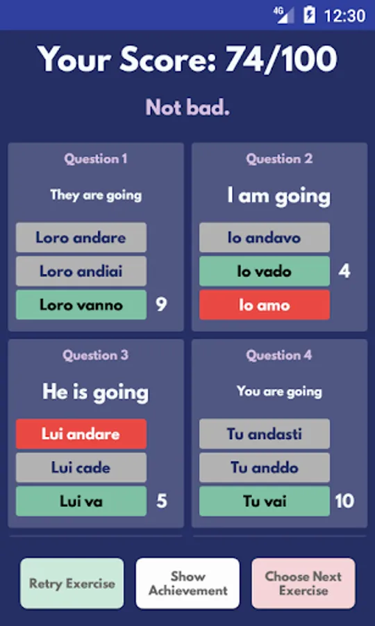 Once fluency improves, VerbSquirt helps the user gain familiarity with the different rules of conjugation for Italian verbs, and with the exceptions, leading to a better understanding of the subtleties of the language.
