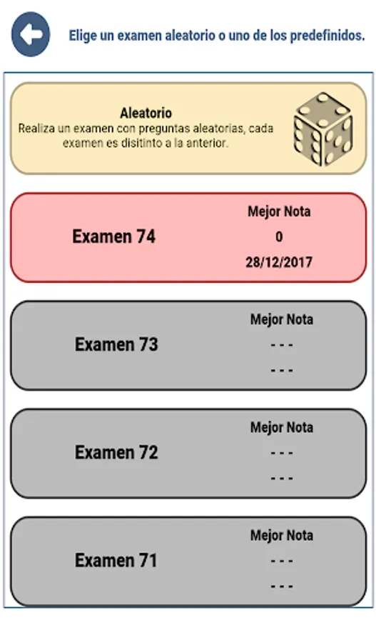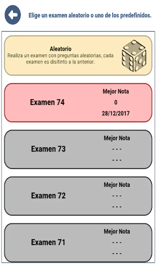- Take randomly generated exams, with the same structure as real exams. Being randomly generated, you have infinite exams at your disposal, all of them different from each other.