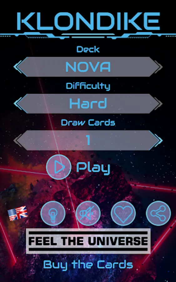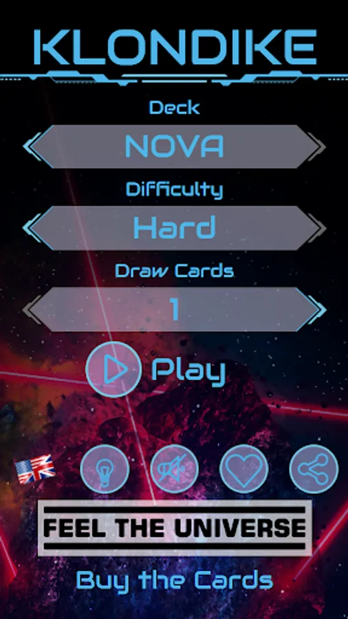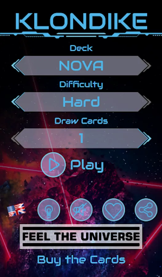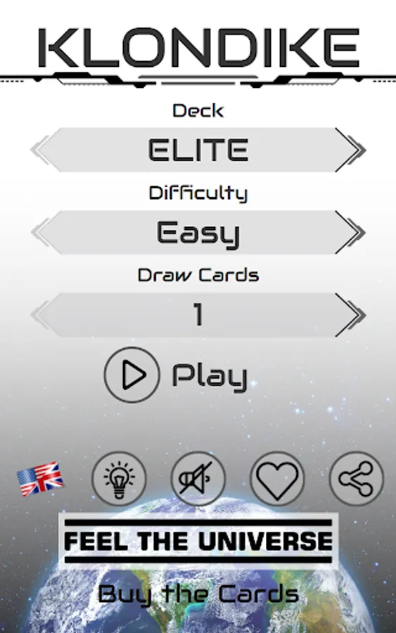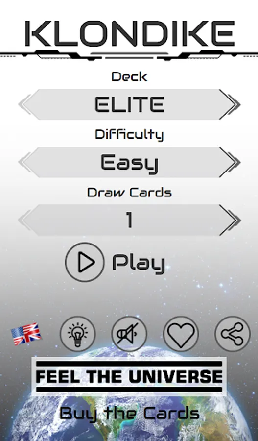 The classic Windows® solitaire (also known as Klondike or Patience) with a set of exclusive cards decks dessigned by Feel The Universe Co.