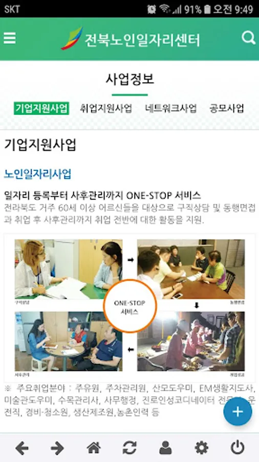 It is a mobile app for providing job search information operated by Jeonbuk Senior Citizen's Job Center, a specialized job center for seniors in Jeollabuk-do. 60+ Provide job information and jobnet job information, and provide job-related educational videos and program information. Information on elderly recruiting companies, elderly product information, and information on executing agencies for senior citizens in Jeollabuk-do.