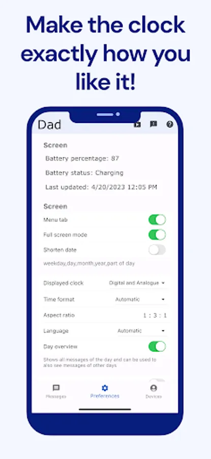 - Administrator Connectivity: Enhance functionality by linking Calendar Clock with the dedicated "Calendar Clock Administrator" app. Caretakers, professionals, relatives, or friends can remotely schedule, edit, and delete messages and reminders, ensuring seamless coordination.
