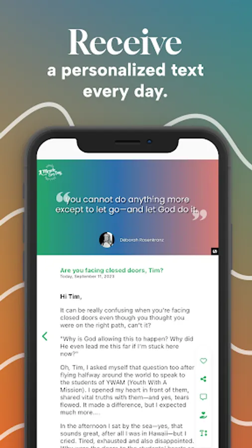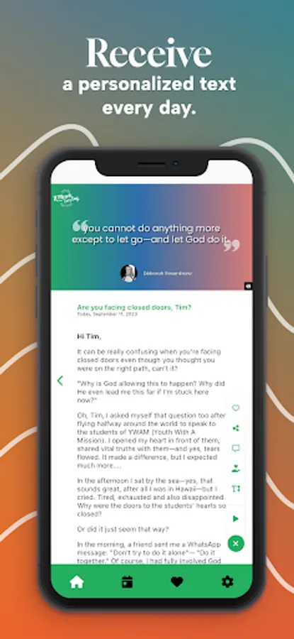 - Read and listen to the text of the day, spoken by Grant and Déborah themselves.