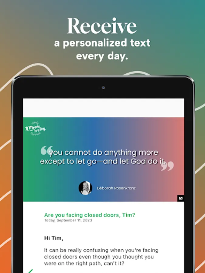 A Miracle Every Day helps you grow in your faith and experience the presence and power of God! Every day, you'll receive a personalized encouragement from Grant Fishbook and Déborah Rosenkranz to start your day right! Thousands of people have already gone before you and can testify about a living God.