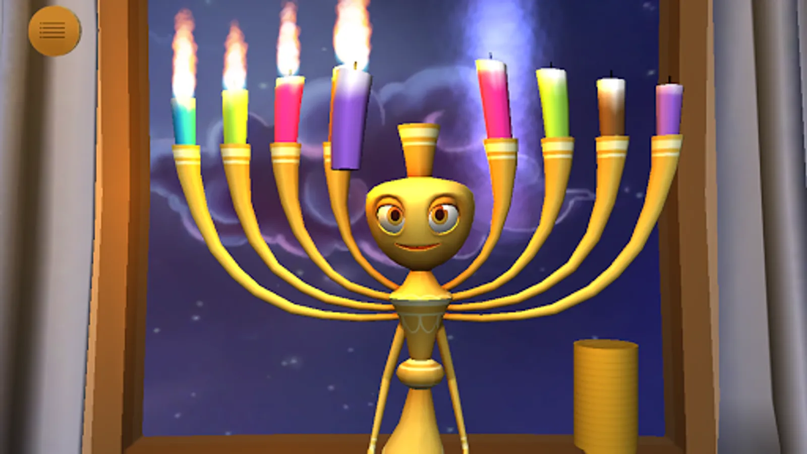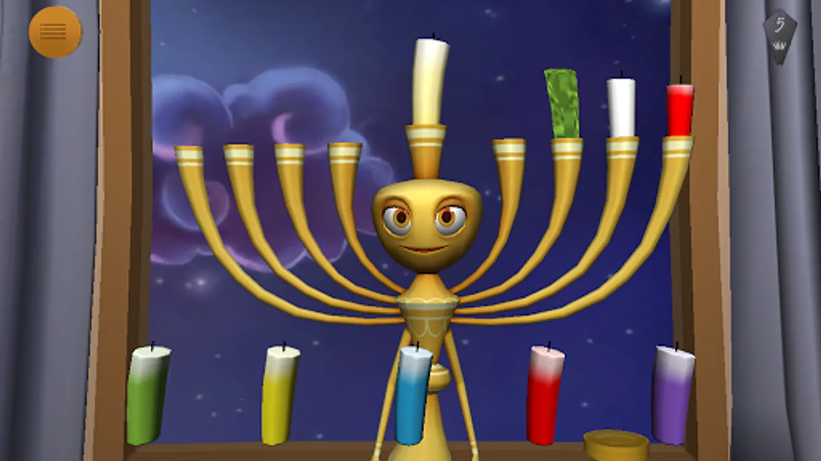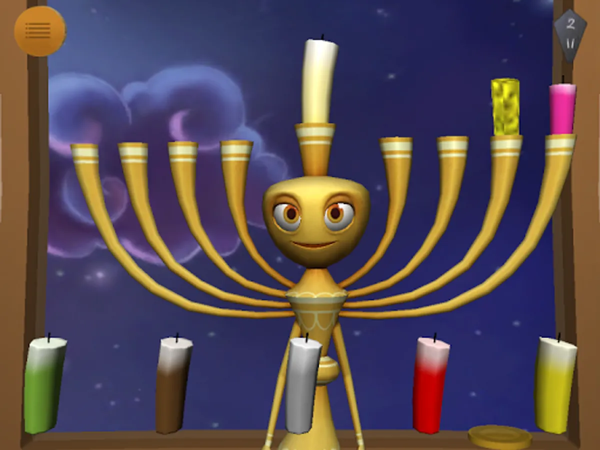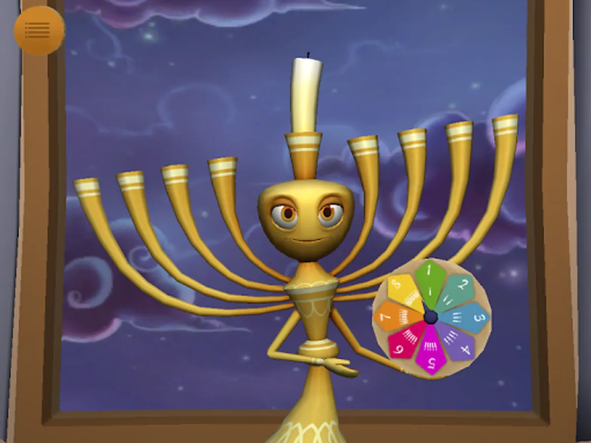 Get ready for a fun-filled Chanukah / Hanukkah! Set up your own menorah each day. Just spin the dreidel to get the color of your next candle. Then light the candles with the friendly Menorah as your guide. Sing Chanukah songs together with your family and earn lots of Chanukah gelt and gifts.