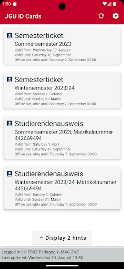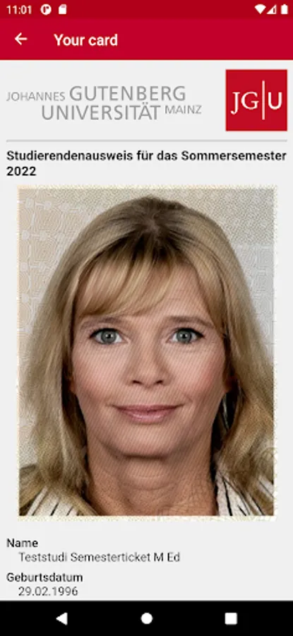 The official ID app of Johannes Gutenberg University "JGU IDs" contains all relevant IDs for students and employees.