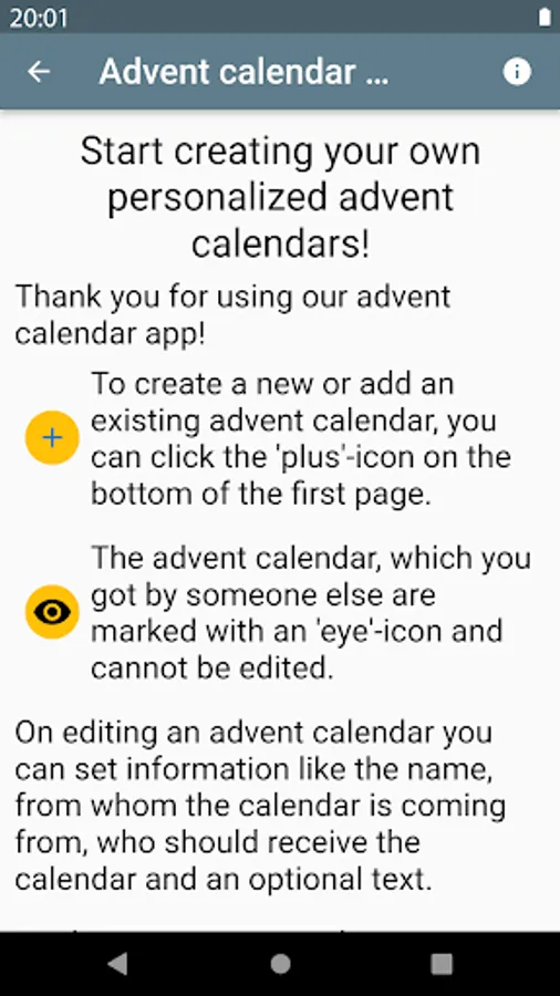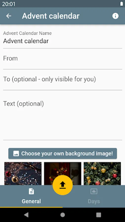 And if you are late; it is no problem to add further images or messages in December. You can share the Advent Calendar and finish it afterwards. Than your additional pictures and messages will be added automatically.