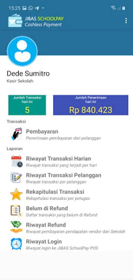 • Integration with JIBAS Finance: School finance staff can manage and view various reports of non-cash payment transactions at JIBAS Finance
