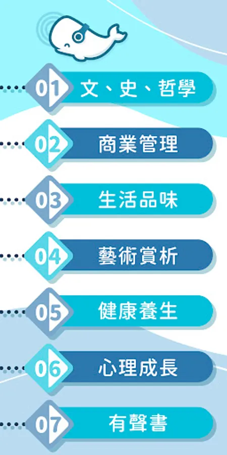 - Spiritual Healing: "Lai Peixia's Six Introductory Courses on "Non-Violence Communication", "Wu Ruoquan's Middle-aged Required Course: Facing One's Courage", "Mastering Your Voice and Mind: Wei Shifen's Voice Self-training Course", "Chen Dezhong Come, be safe: Live life with mindfulness", "Wu Qiying's Anxiety in Ageing"...Explore the mind, understand yourself, and harvest a happy life.