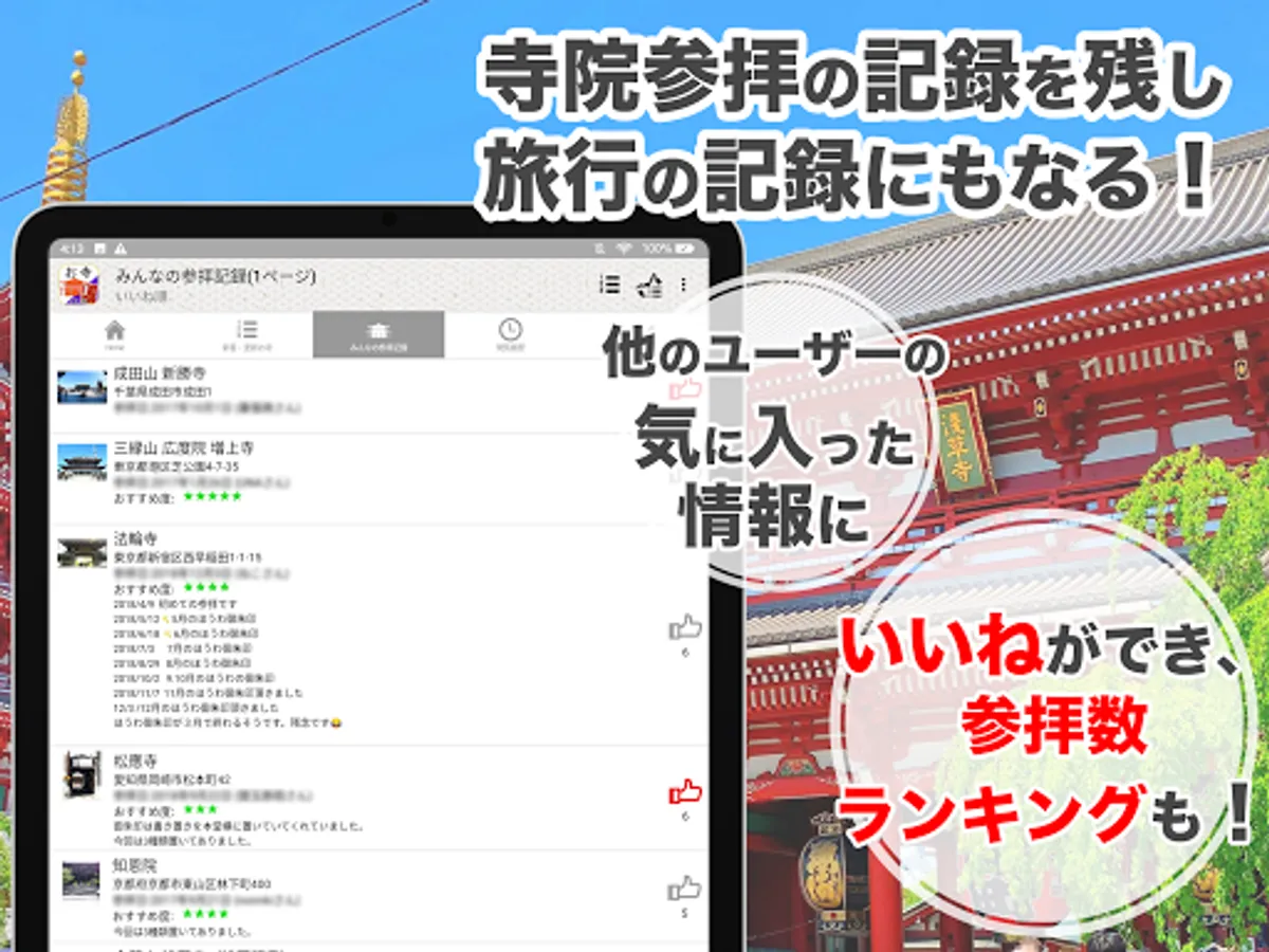 ・In the temple access ranking, you can see at a glance which temples are trending right now.