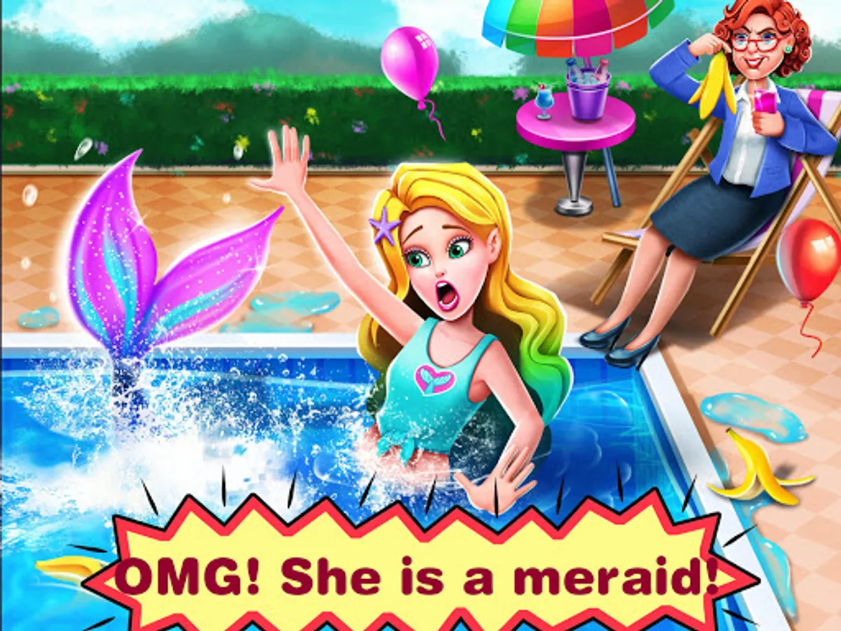 Mermaid Princess Mia was invited to a summer pool party. Mermaid Mia dressed up and make up for this pool party. What will happen for princess at sea in this crazy party? Be the mermaid princess and find the answer in our mermaid game.