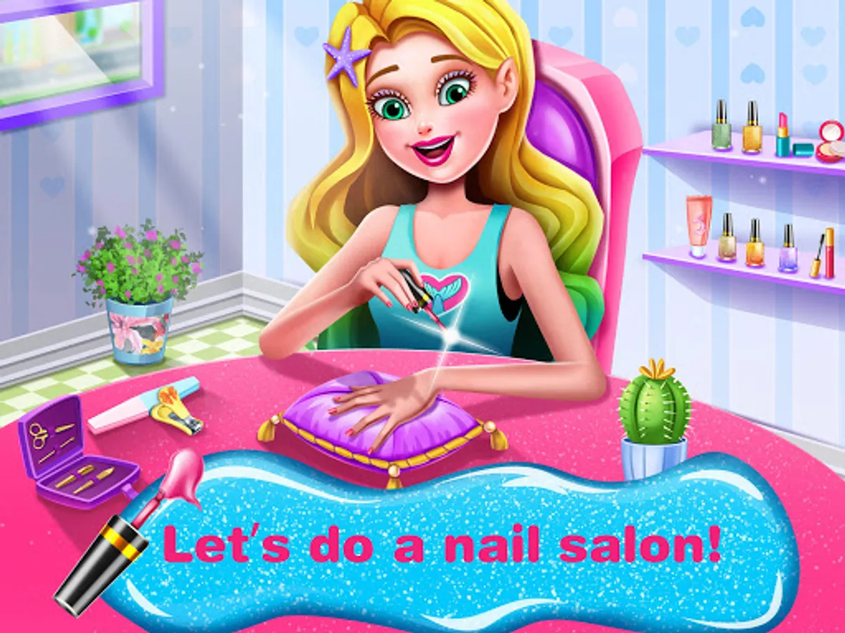 5. Mermaid girl Mia manicures her princess nail. Let’s enjoy the nail spa in mermaid games for girls.