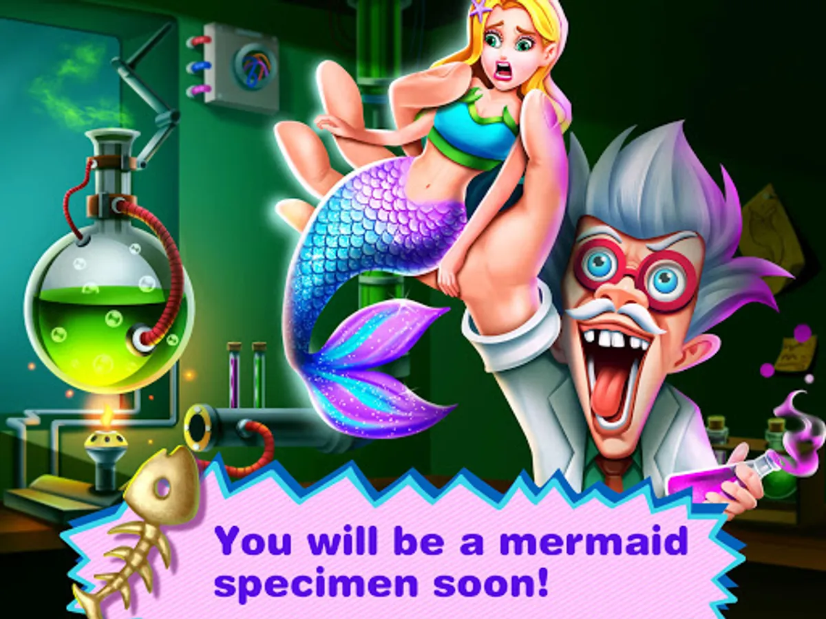 OMG! Are mermaids real?The mad geek kidnaps a mermaid. The mad geek hides Mermaid girl Mia in his lab. Will he carry on a science experiment about mermaids?