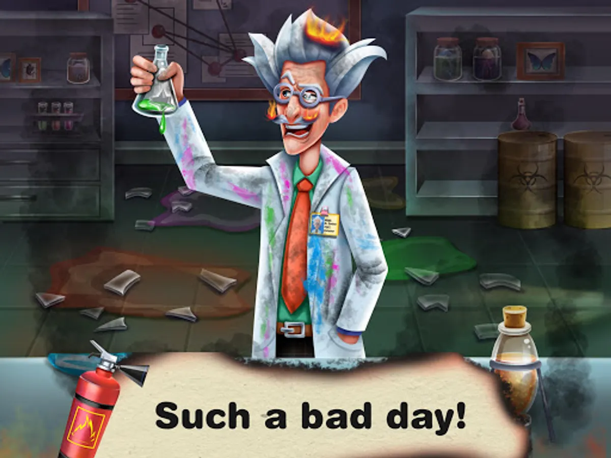 5. The mad geek prepares a special container for princess Mia in his crazy lab.