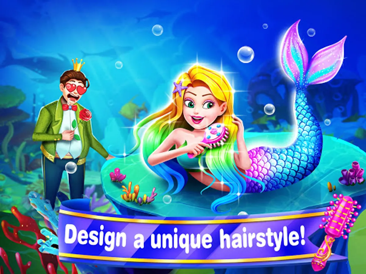 The best mermaid princess makeover for girls. You can stimulate the real mermaid world in our beauty kids game. Help your prince charming dresses up and shaves clean. Join the princess tailor boutique and prepare a perfect clothing in mermaid games. Cut hair and change a new hair style in mermaid girl games. Now download the princess salon and