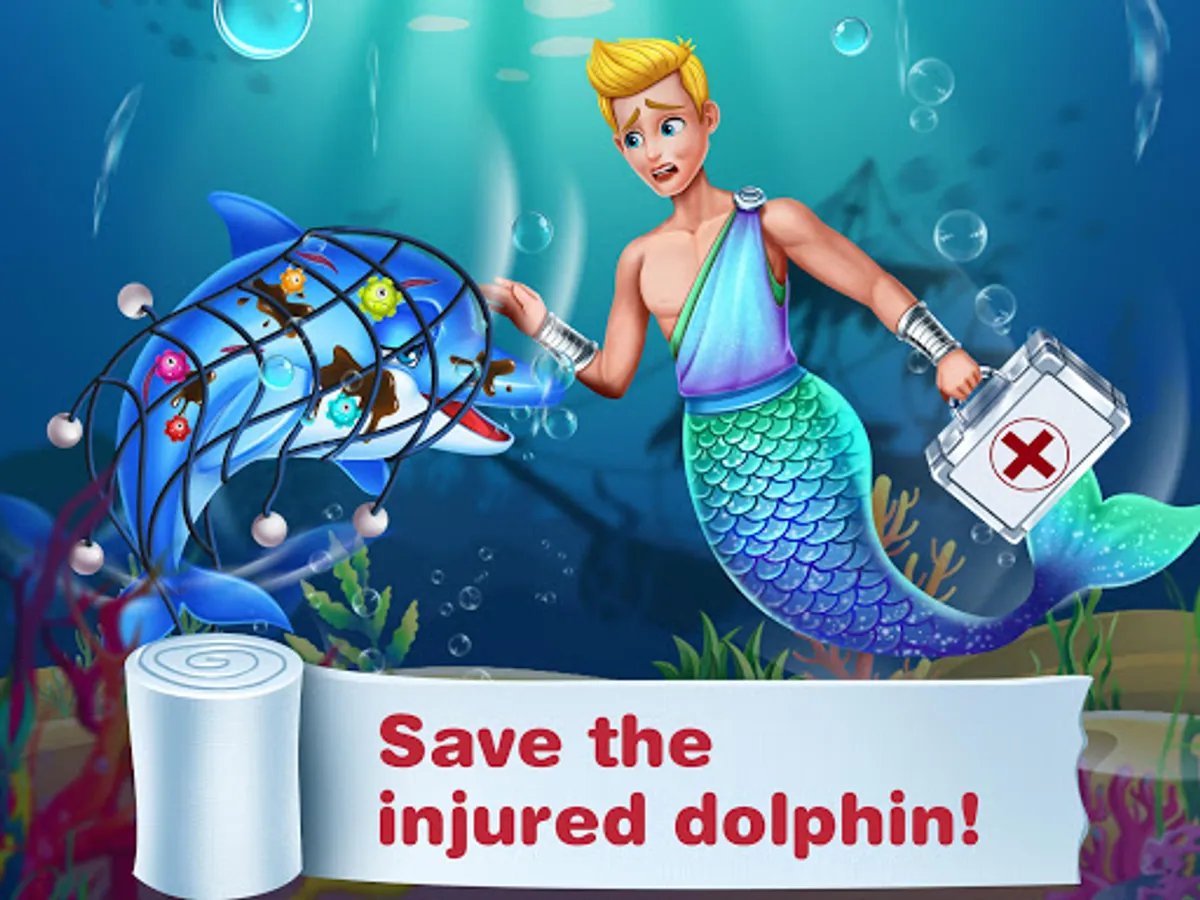 High school boy Eric turns into a merman and dives into the deep ocean. Will he meet princess at sea Mia? Oh no! Mermaid princess Mia is dancing with a prince. Who is he? The poor ocean wildlife little dolphin gets injured. Be the sea doctor and cure this sea animal! Mermaid girl Mia’s father plans to choose a prince for her.How would she react to this decision?Save Mermaids now!