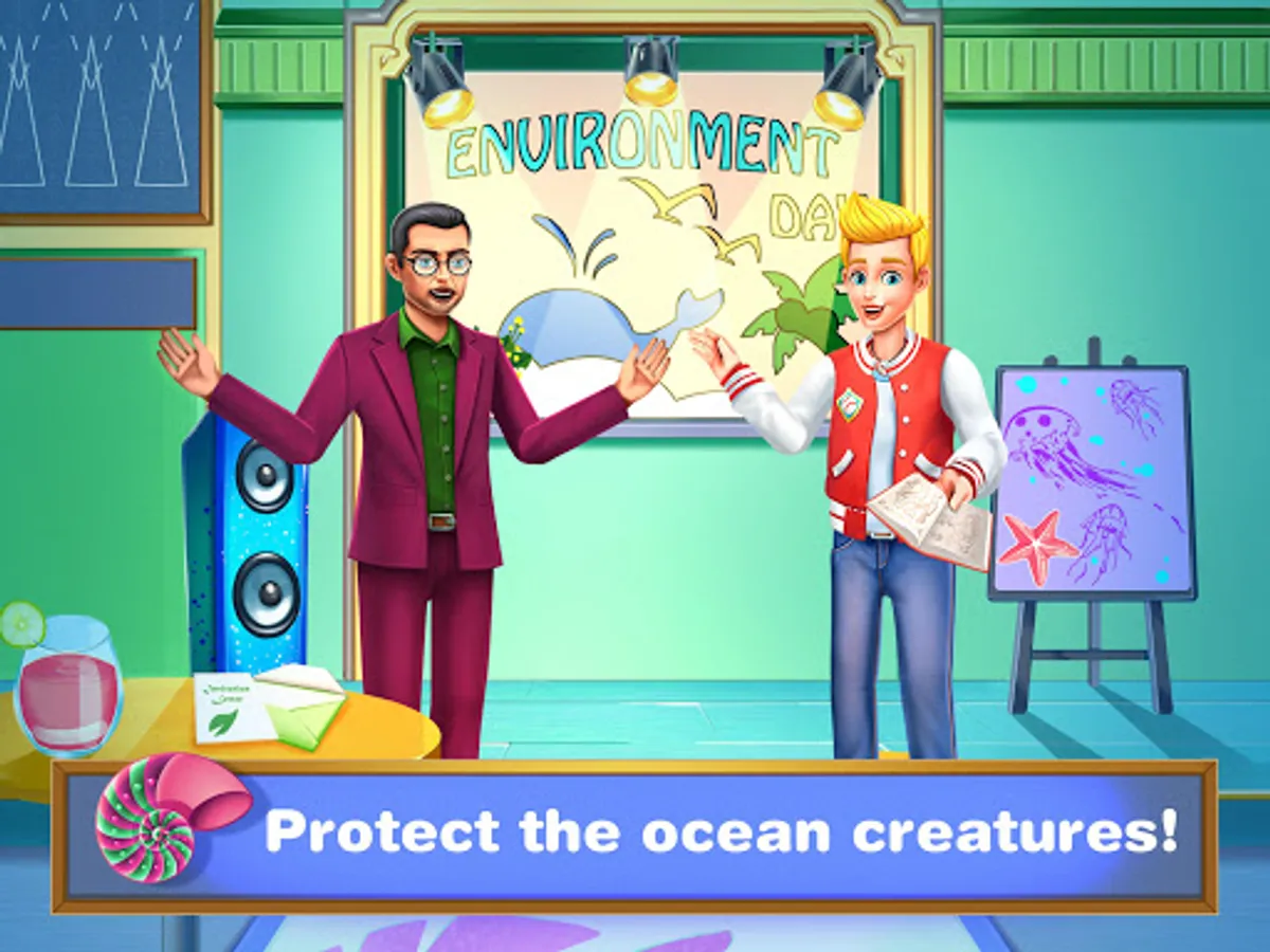 2.Mermaid Mia has a princess quest and turns into a high school girl to meet her first crush in the high school. Have fun in our mermaid girls game.