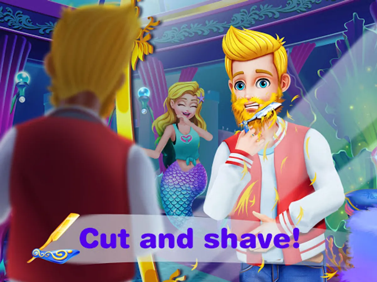 7.Hair stylist, design the most fashion hairstyle for Eric in the barber shop! It is important for Princess Mia bring prince Eric the sap shave in the ocean hairsalon.