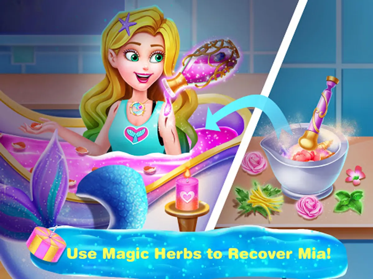 3.Mermaids girl Mia is in danger in sea games! Princesa is injured by evil witch in the mermaid game. Will mermaids fail? Find the answer and save the girl in our beach games and mermaid games!
