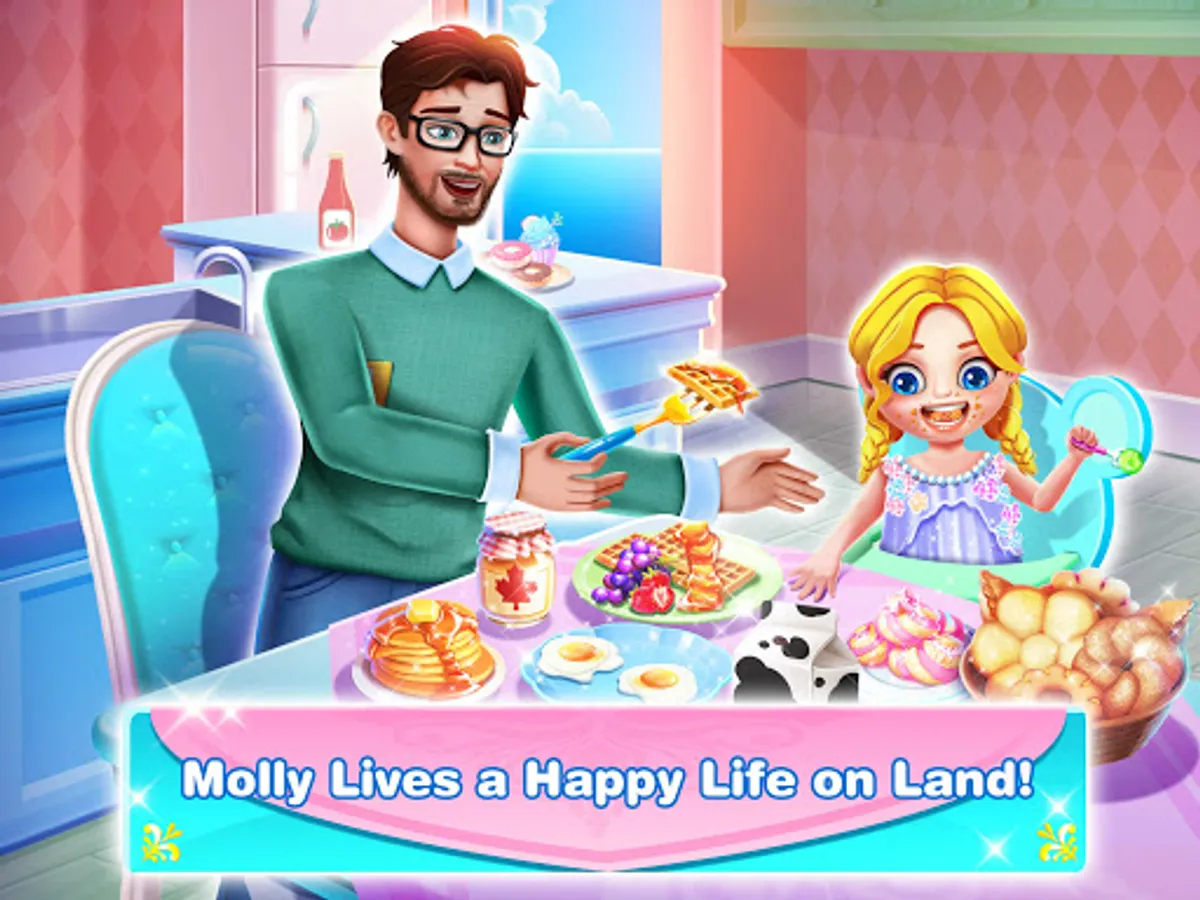Mermiad proncess Molly was adopted by a high school teacher in last episode. He take care of baby girl very well. He even can do bsby dressing in royal salon! Check out how’s princesses in our mermaid game right now!