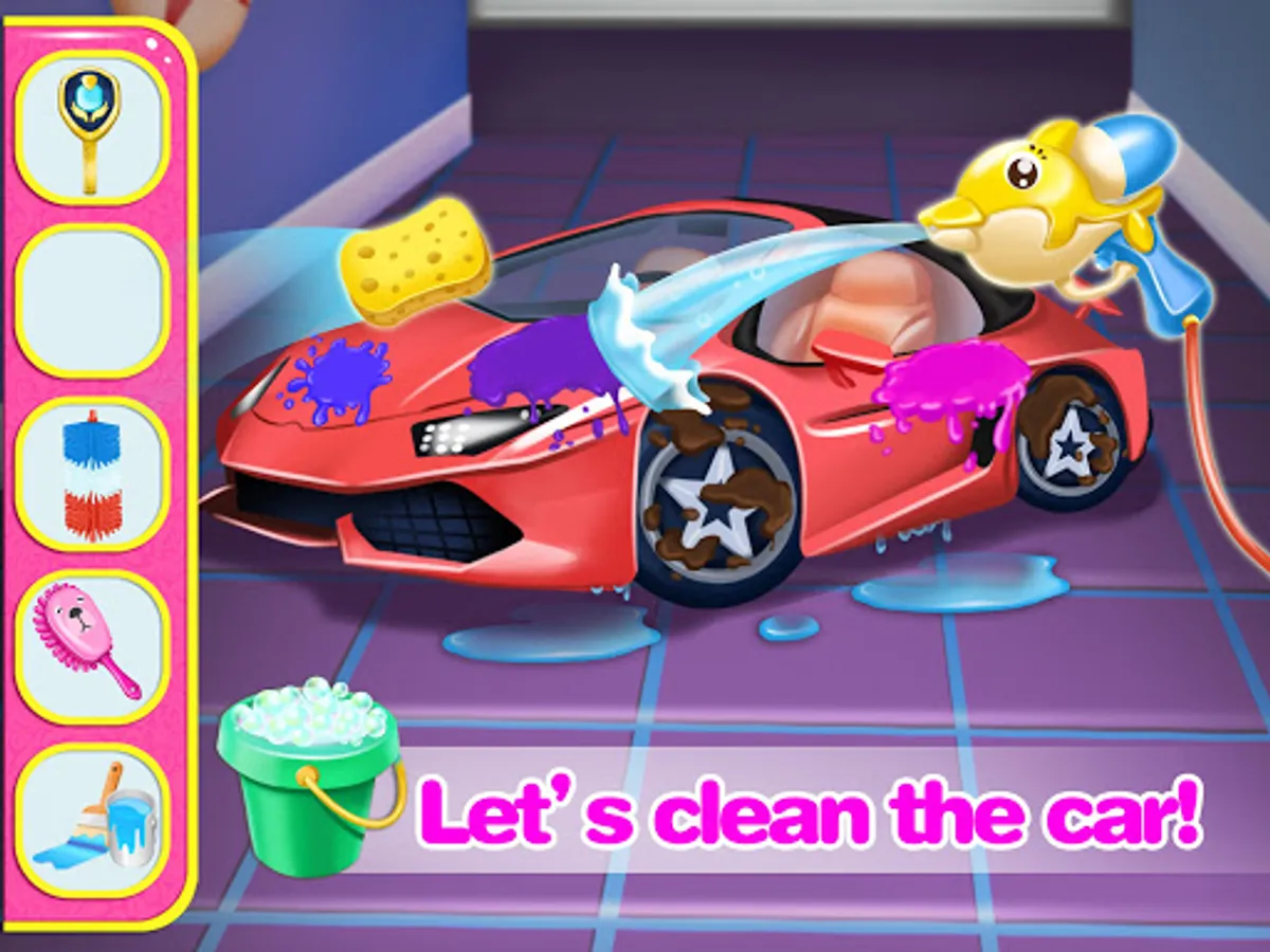 3. Egh! The car is so messy! Take Jorden's messy car into the car salon shop and start do the car washing!