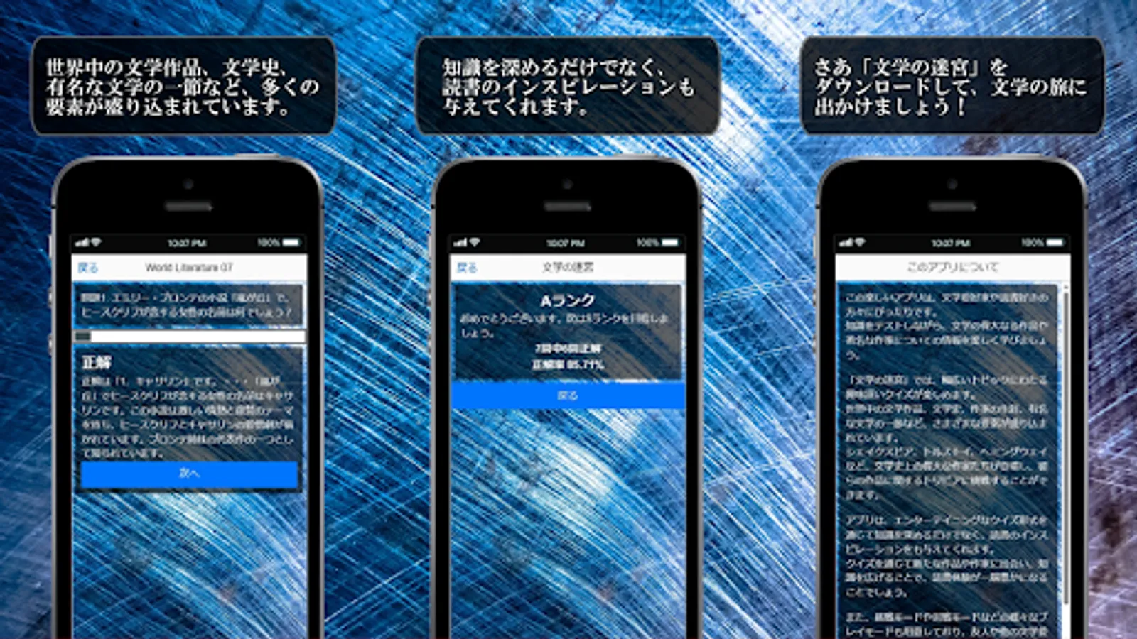 The appeal of the literary history quiz app is that anyone can easily operate it thanks to its intuitive interface and beautiful design.
