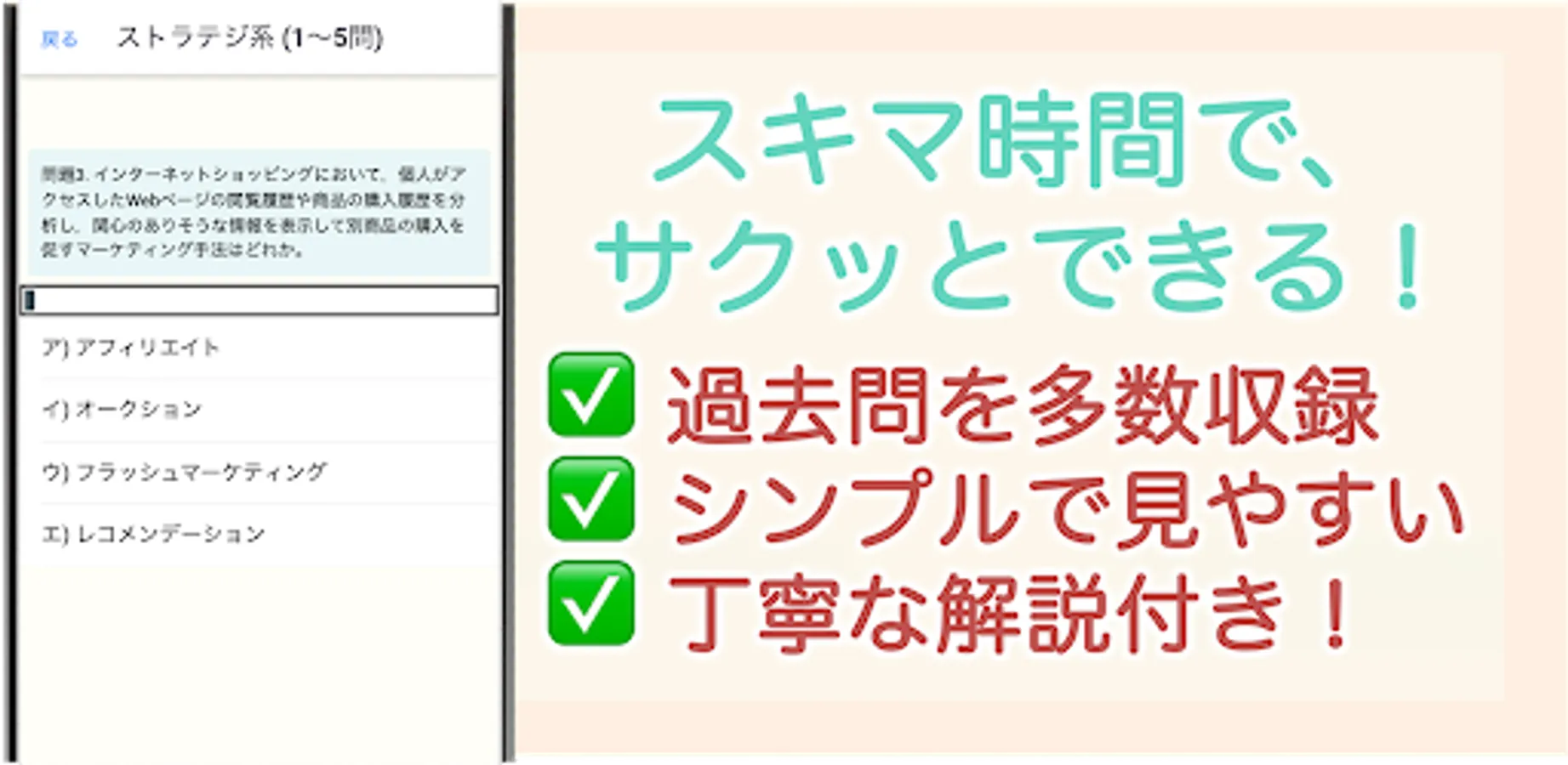 It is an i-pass exam countermeasure application that allows you to solve past questions in your spare time and learn.