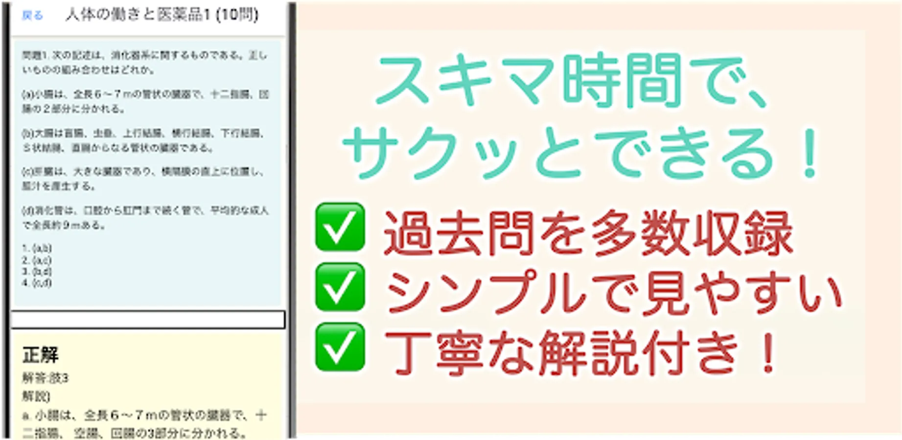 It is a registered seller countermeasure application that allows you to solve past questions in your spare time and learn. Carefully selected questions that often appear in the exam.