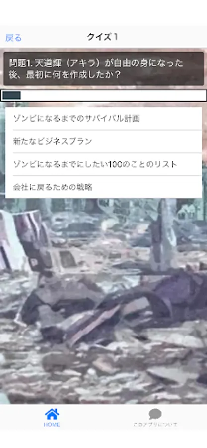 This app provides a wide variety of quizzes about the popular work "Zon 100 ~ 100 things you want to do before becoming a zombie ~".
