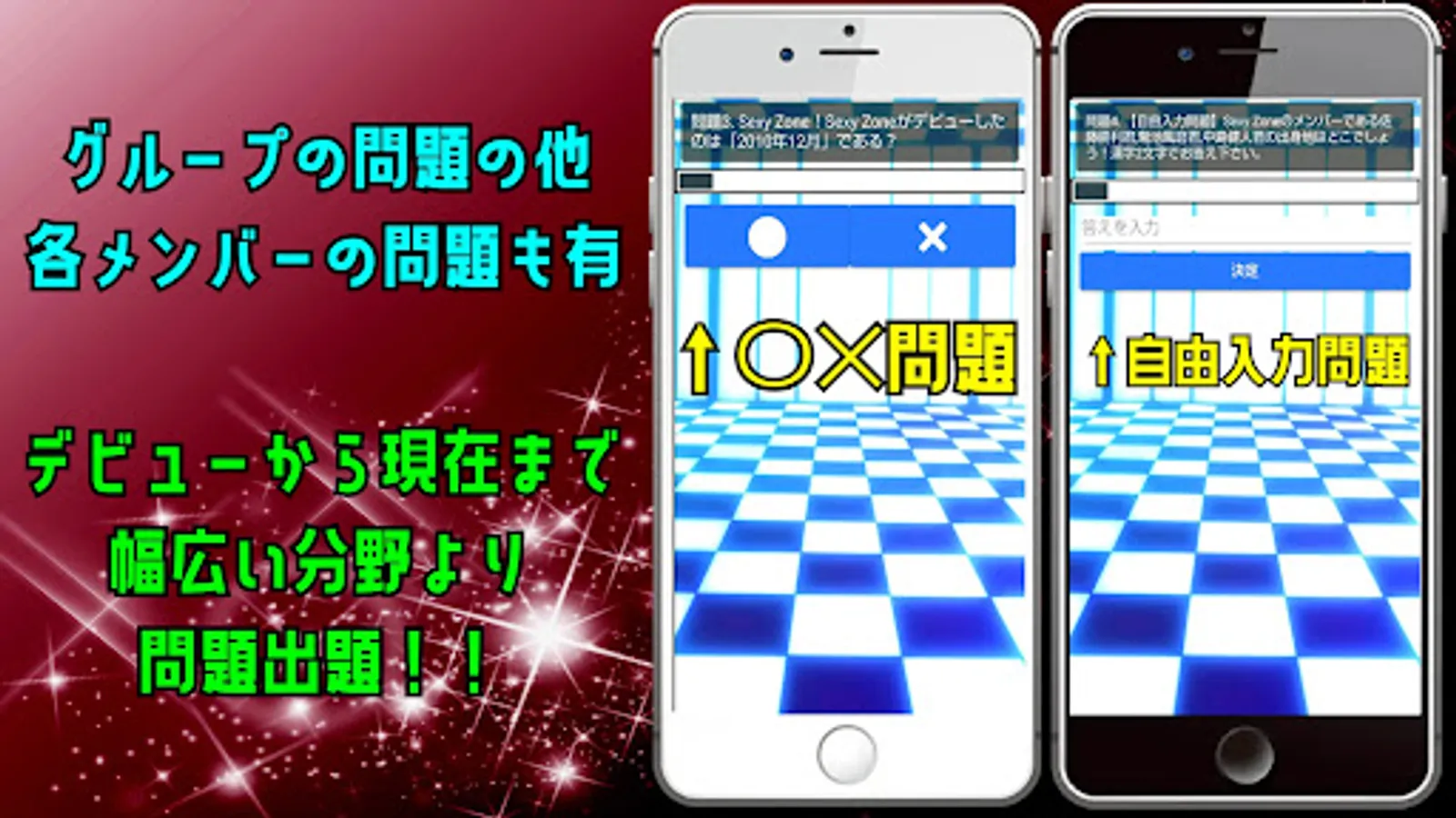 It is a quiz app on the popular Johnny's group "Sexy Zone".