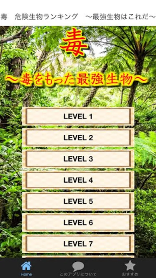この世界にいる毒をもった危険生物たち。世界最強の毒をもつ生物をしってますか?海で泳いでいるとき危険な生物をしってますか?毒をもった最強生物たちのクイズアプリ